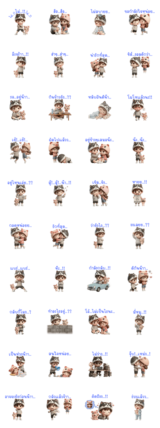 | スタンプ説明 | A love story conveyed through stickers of a cat & a pig representing every moment of love. There is a matching sticker set called "Which Pig is Cat Girlfriend" |