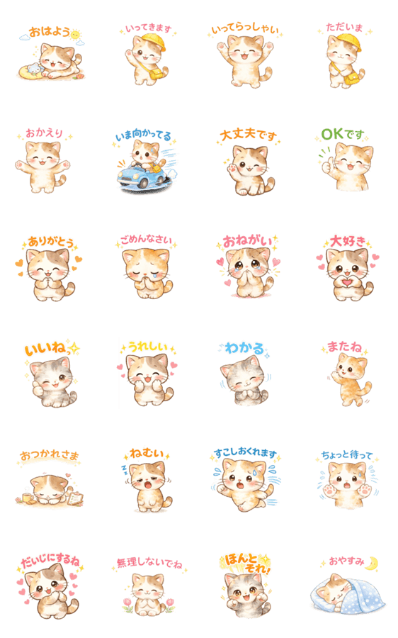 | スタンプ説明 | Soft and cute cat stickers for everyday use. Perfect for expressing emotions, greetings, and daily conversations. |