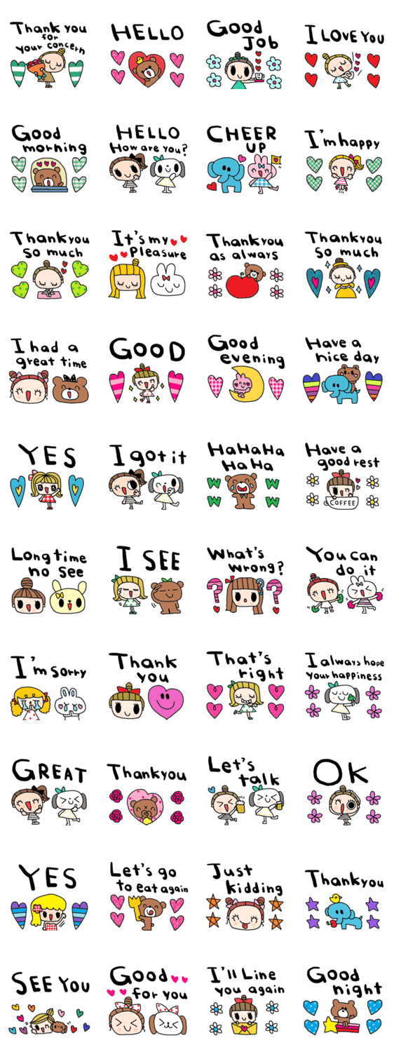 | スタンプ説明 | シンプルな日常会話スタンプです。お気遣いスタンプ 英語スタンプ |
