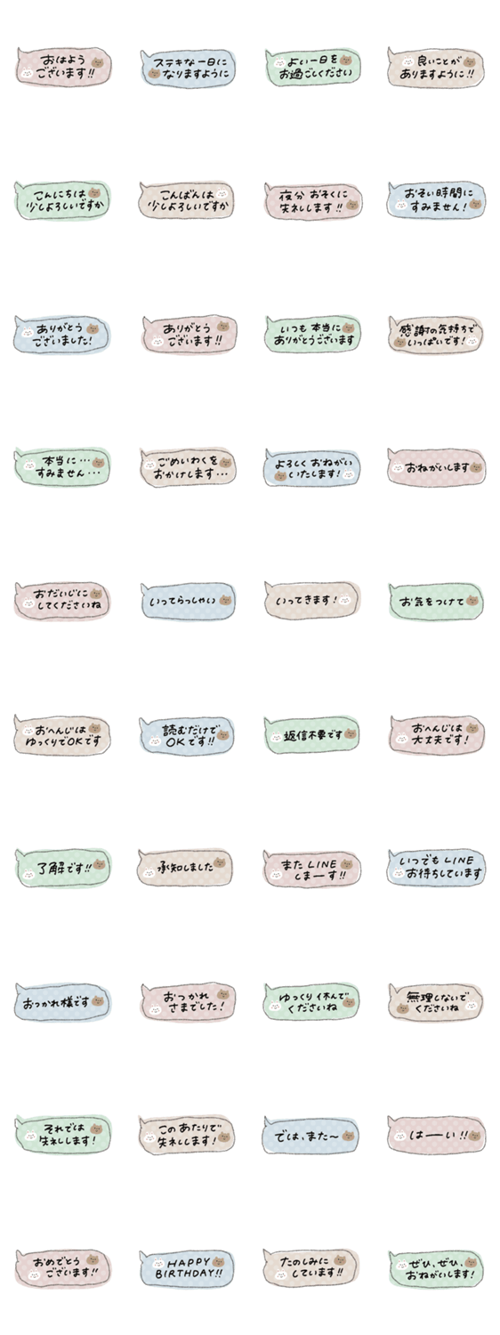 | スタンプ説明 | 場所を取らない無難な優しい敬語のスタンプです。目立たない、小さくコソッとグループトークで使いやすいサイズです。くすみ/落ち着いた/大人可愛い/おとなかわいい/穏やか |
