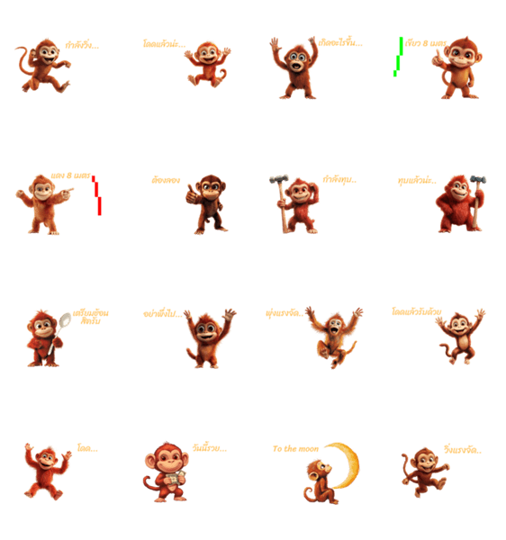 | スタンプ説明 | The orange monkey loves investing and will bring you happiness and prosperity. |