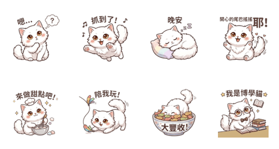 | スタンプ説明 | Cute fluffy cat stickers for every mood~ Your daily life, in cat form! |