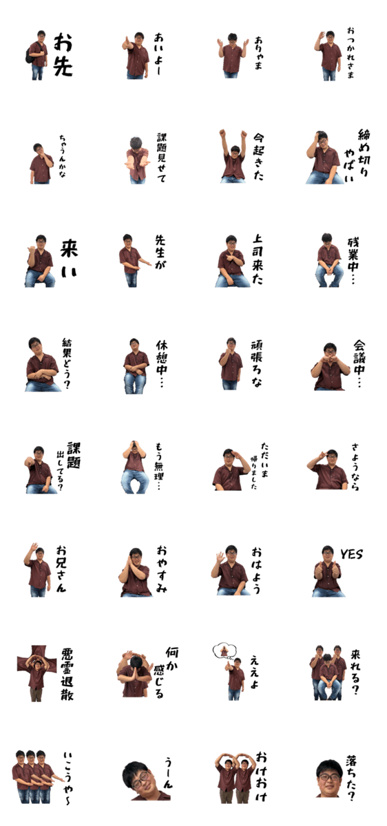 | スタンプ説明 | 実写のヒラコウキが登場!良い表情でネタやギャグが満載の第2弾スタンプ16個。面白いリアクションや笑える場面もたっぷりで、日常会話に便利なLINEスタンプです。 |