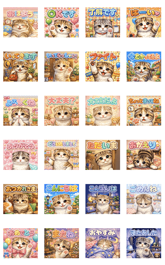 | スタンプ説明 | ピクセルアートの猫ちゃんが可愛く動く基本の挨拶のポップアップスタンプです。 |