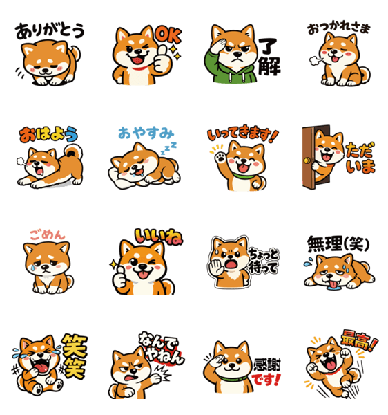 柴犬スタンプ|かわいい日常会話16個セット