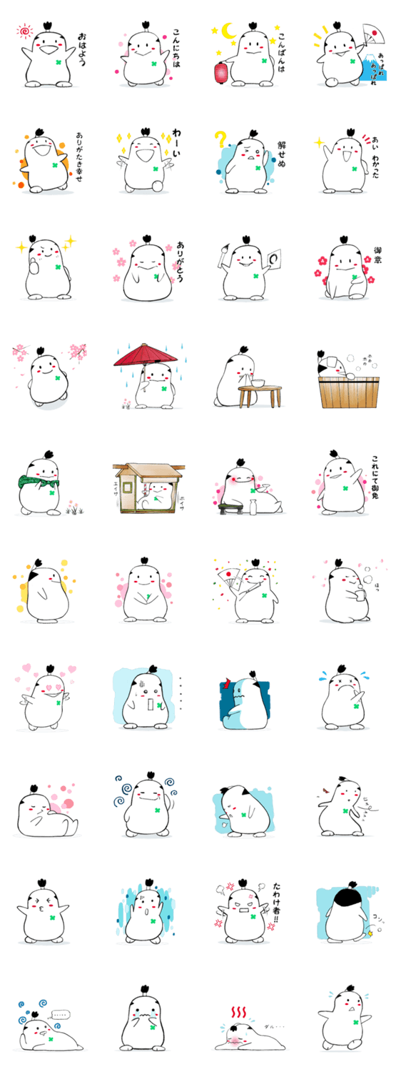 まげザエモンは武士言葉をしゃべる、ほんわかとしたキャラクターです。ほのぼのとしたスタンプが揃っています。