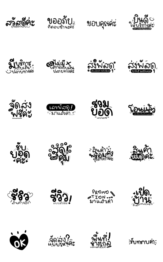 | スタンプ説明 | Collection of words that online sellers use regularly, minimal black and white tones ~ |