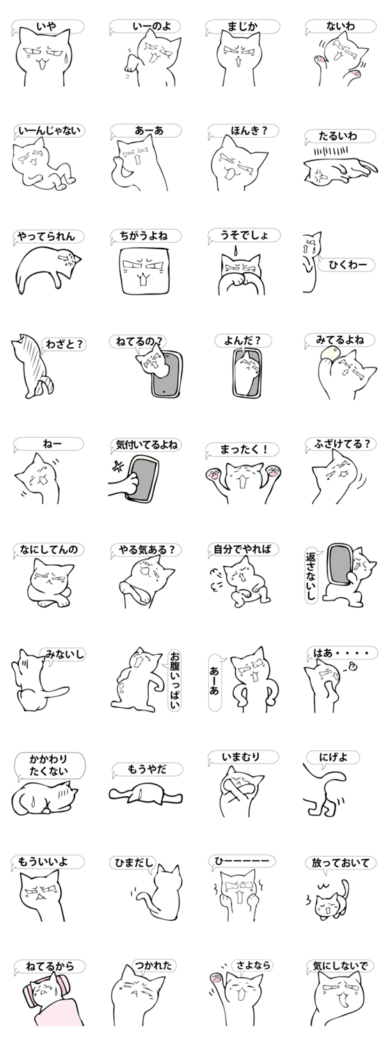 白ネコのあいうえお・・・ってるスタンプ