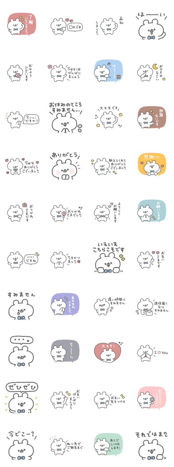 | スタンプ説明 | 毎日使いやすいゆるいくまのスタンプ! くま/ゆる/あいさつ/吹き出し/敬語 |