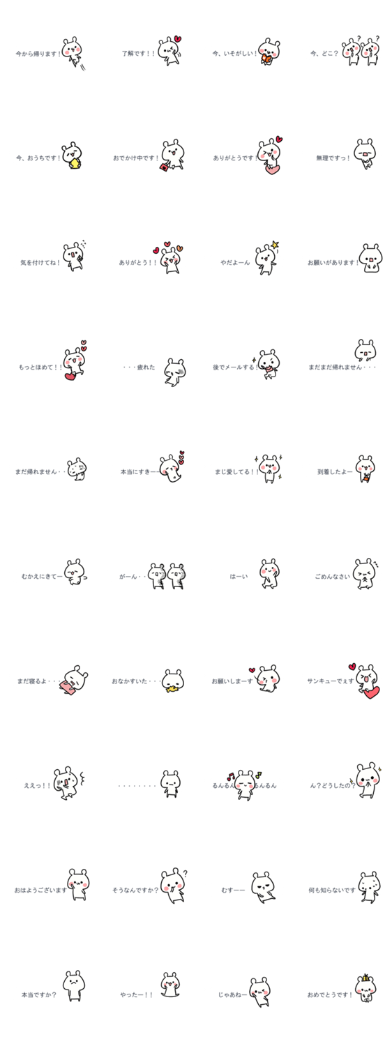 家族や恋人との連絡でよく使う文言の吹き出しスタンプです。クマの可愛いスタンプです。