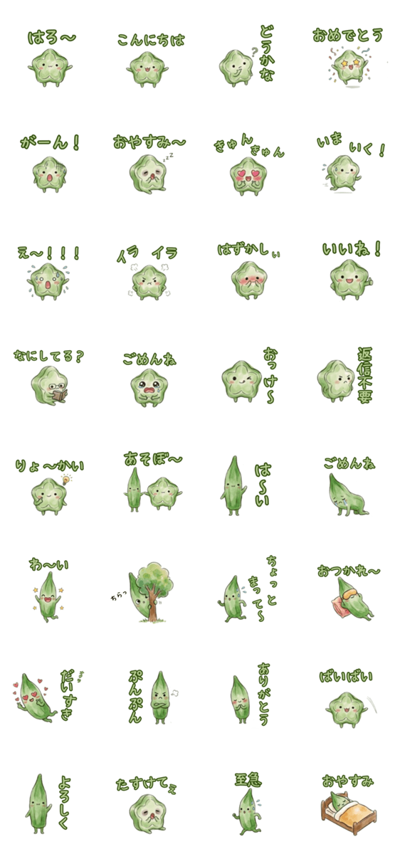 | スタンプ説明 | ゆるっと可愛い「オクラ~ず」で、気持ちを自然に伝えられます。会話にやわらかさがプラスされ、やりとりが楽しく。あなたはもちろん、送られた相手の心もほっと和みます。 |