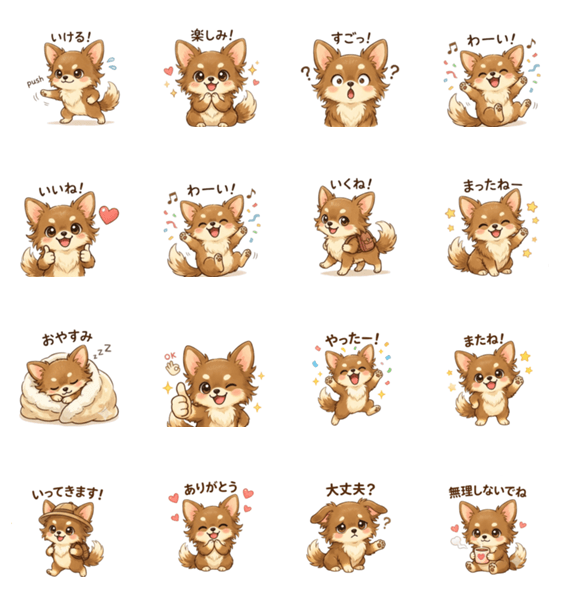 | スタンプ説明 | かわいいチワワ「こう」の日常スタンプ。 挨拶やリアクションなど毎日使える癒しスタンプです。 |