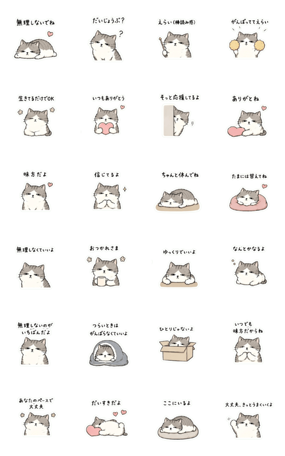 | スタンプ説明 | 疲れた心に、そっと寄り添う。 頑張る誰かを包み込む、優しさたっぷりのスタンプです。 |