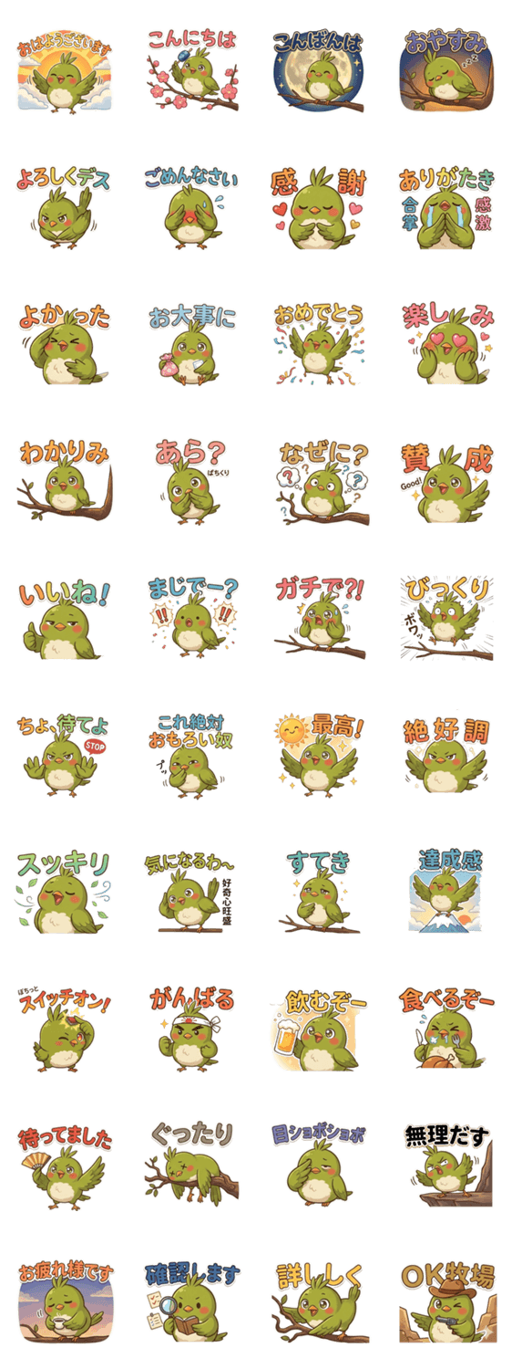 | スタンプ説明 | トークがはずむ!ウグイスのほーちゃんと毎日おしゃべり♪仲よしグループにぴったりだよ。 |