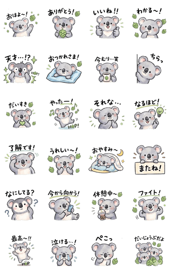 | スタンプ説明 | いつもよりもゆるくかわいいほっぷこあらを是非日常で使って癒されてね。 |