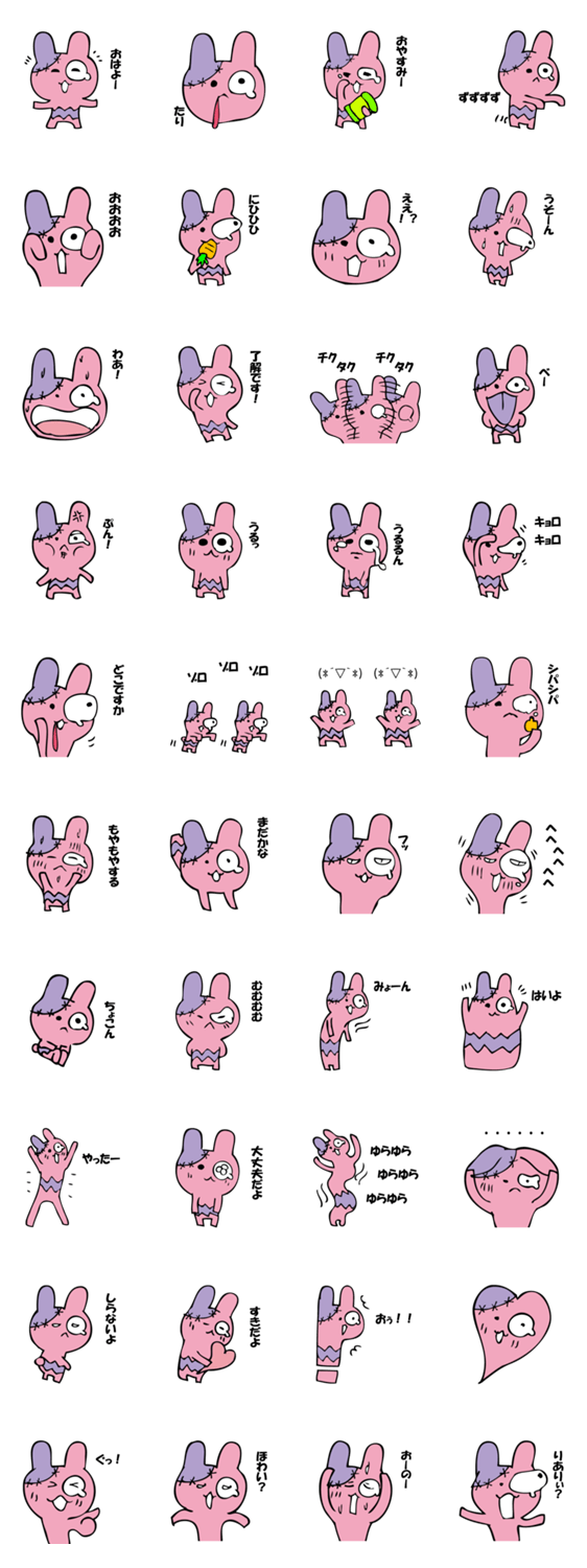 うさぎのゾンビ「うさぞん」。顔はこわいけれど、かわいくお返事します。意外に日常使いしやすいセリフもたくさんあります。うさぎは、ぞんびになってもカワイイ!