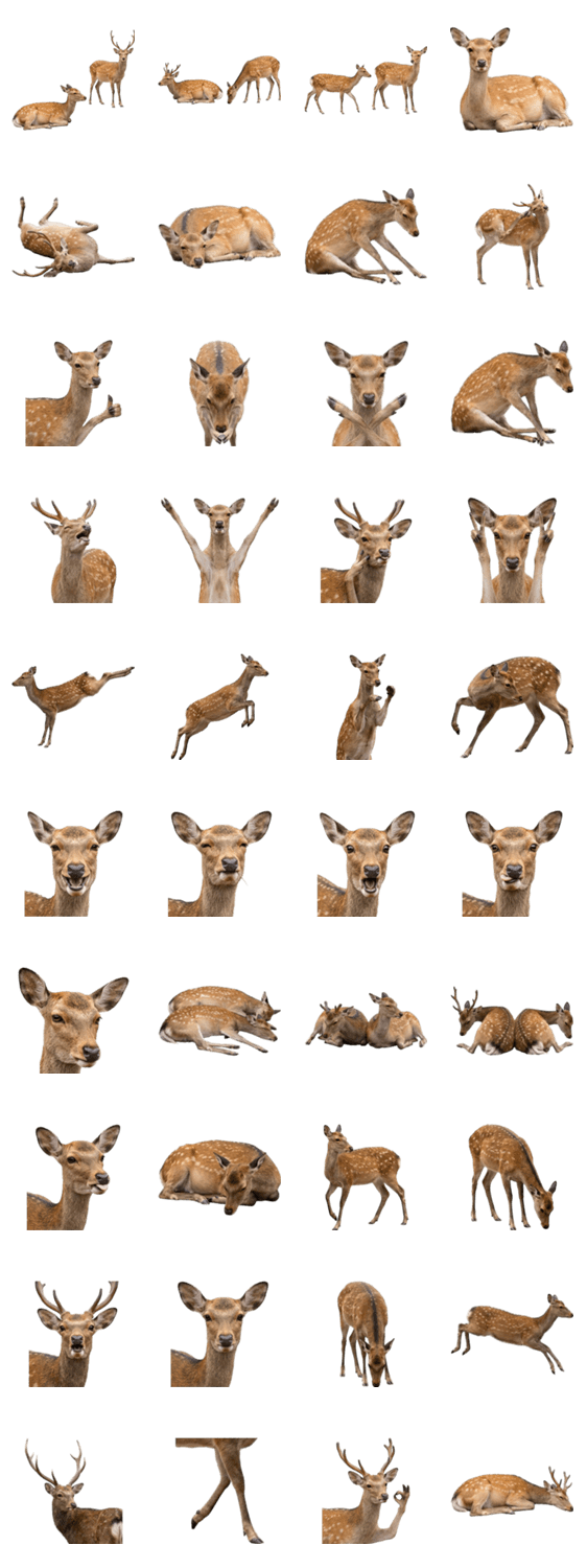| スタンプ説明 | 奈良の鹿実写スタンプ写真奈良観光鹿せんべい野生動物シカしか日本鹿天然記念物修学旅行お土産ご当地キャラアニマル癒やしフォトリアル可愛いかっこいい雄鹿雌鹿小鹿バンビ |