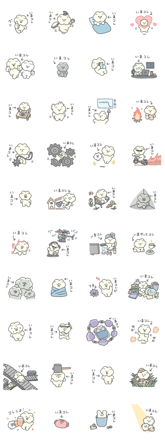 | スタンプ説明 | チャーミングもさもさドッグの「もっさりもさお」はビションフリーゼの男の子!このスタンプでは、もさおがいまの状況を的確に表してくれるよ! |
