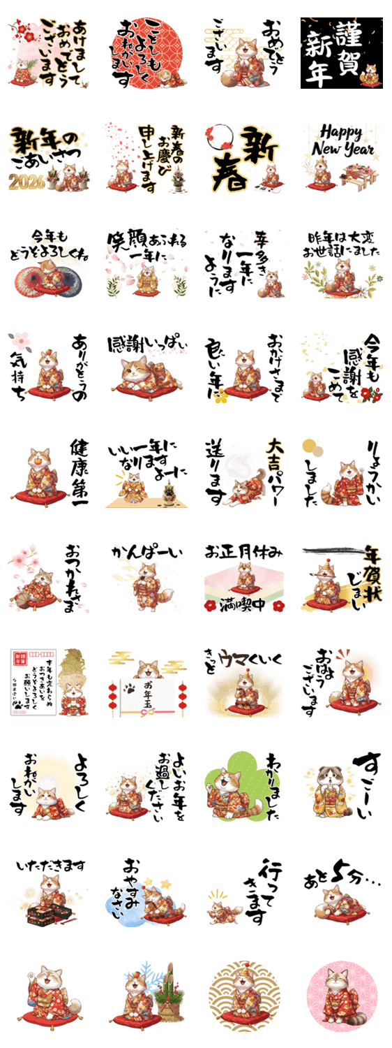 | スタンプ説明 | 着物姿のラガマフィンが、新年のあいさつから日常のひと言まで可愛く届けます。お正月メッセージはもちろん。ふわふわ感でトークを明るくしてくれるスタンプです。 |