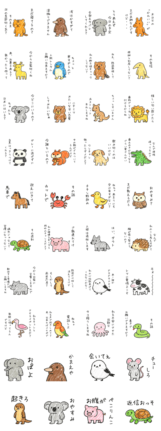 | スタンプ説明 | 毒舌だけどどこか憎めない動物たち。 ゆるい見た目でズバッと本音を言います。 日常のツッコミやちょい煽りにどうぞ |
