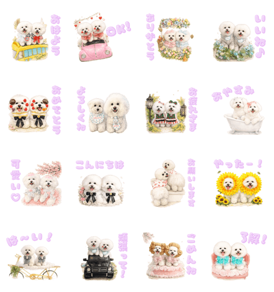 | スタンプ説明 | まろとかぐやの雅で上品なひととき。やさしく可愛い表情と使いやすい言葉で、日常のトークをふんわり華やかに彩る癒しのスタイルです。 |