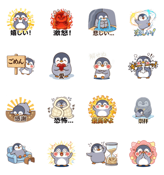 | スタンプ説明 | 感情豊かなペンギン「エモペン」の日常スタンプ。喜怒哀楽を可愛く伝えます。シンプルで使いやすく、トークを賑やかに彩るキーワードが満載です。 |
