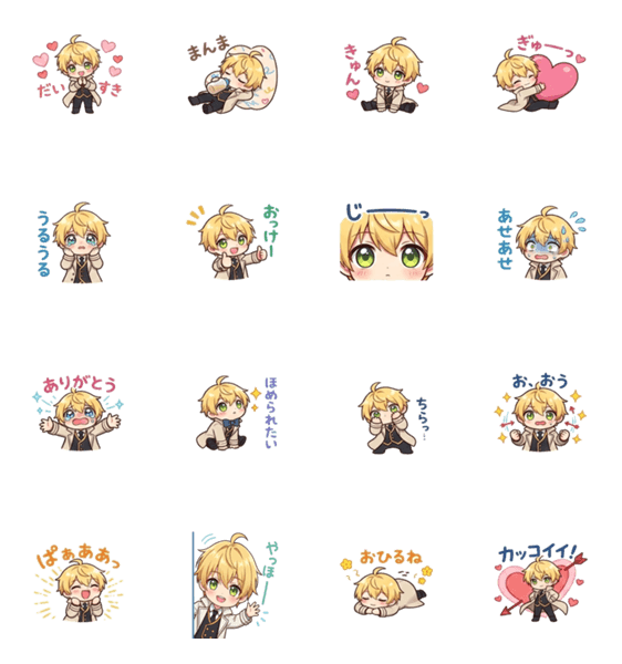 | スタンプ説明 | だいすき・きゅん・ありがとうなど、日常会話で使えるシンのかわいいちびキャラスタンプです!全16種類。 |