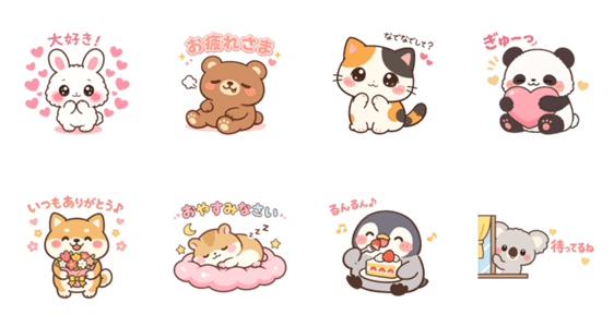 可愛い動物たちのスタンプです。