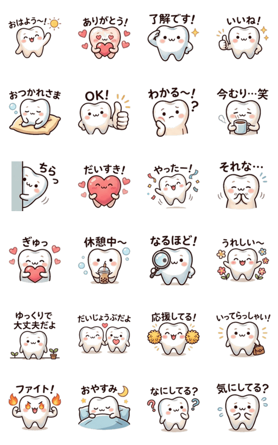 日常生活で使えるゆるかわ歯スタンプです