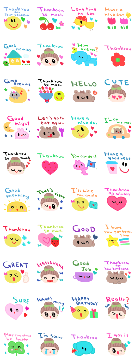| スタンプ説明 | シンプルな日常会話スタンプです。お気遣いスタンプ 英語スタンプ |