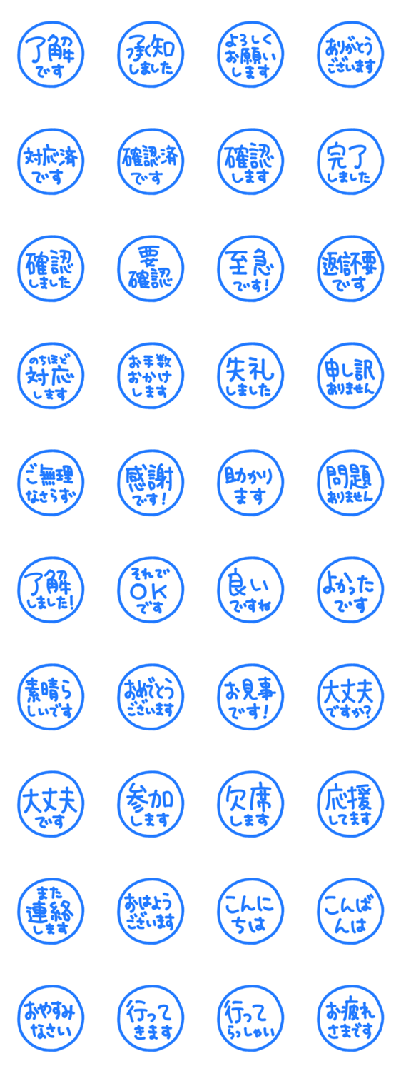 | スタンプ説明 | シンプルな敬語の手書き文字スタンプです。毎日の連絡や仕事の返事に使いやすいデザインです。 |