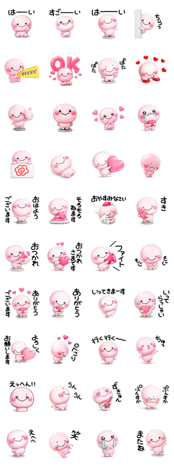 | スタンプ説明 | ハートが多めのピンクの子のスタンプです。ずっと使える内容を揃えましたのでスタンプ初心者の方にもオススメです。 |