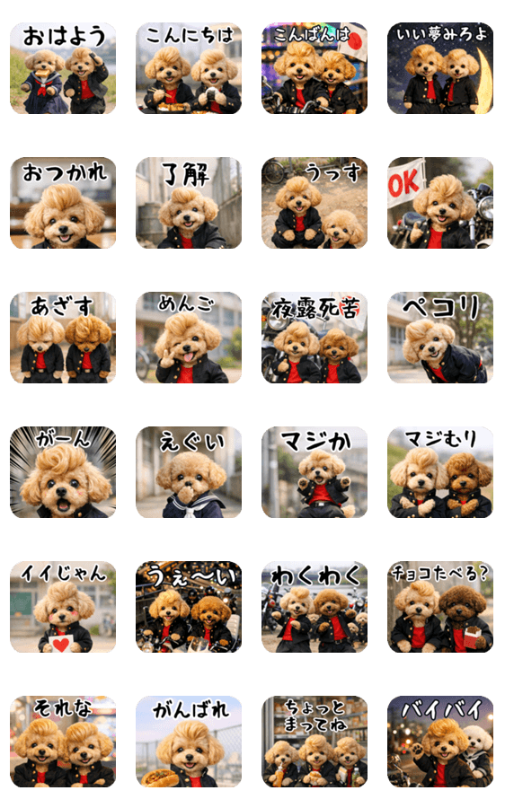 | スタンプ説明 | 飛び出す トイプードル 不良 日常スタンプ/うごく/動く/挨拶/ポップアップ/犬/トイプー/いぬ/動物/子猫/実写/写真リアル/わんこ/わんちゃん/ヤンキー/昭和/山田まぽん作 |