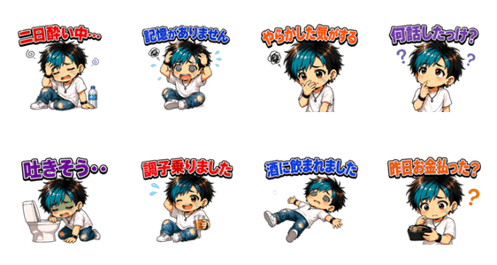 | スタンプ説明 | 二日酔い確定スタンプです 楽しい時間からの翌日のリアルまで、思わず「それな!」と言いたくなるシーンに使えます。 日常トークや飲み会後のやりとりにもぴったりです。 |