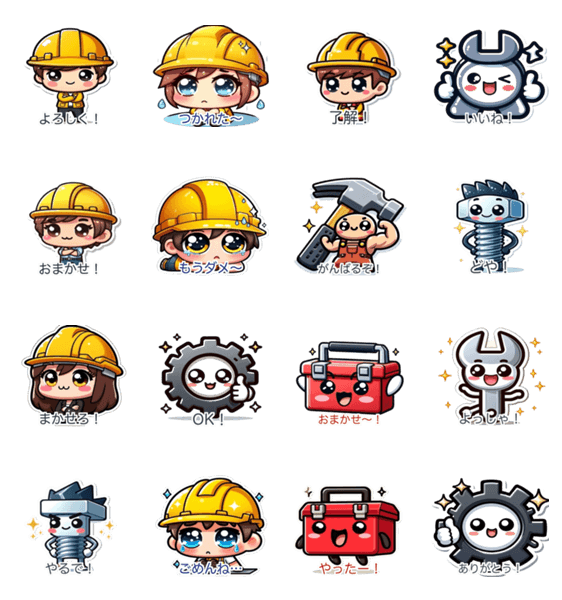 工具をモチーフにしたゆるかわキャラのスタンプ!仕事中のトークにぴったり。