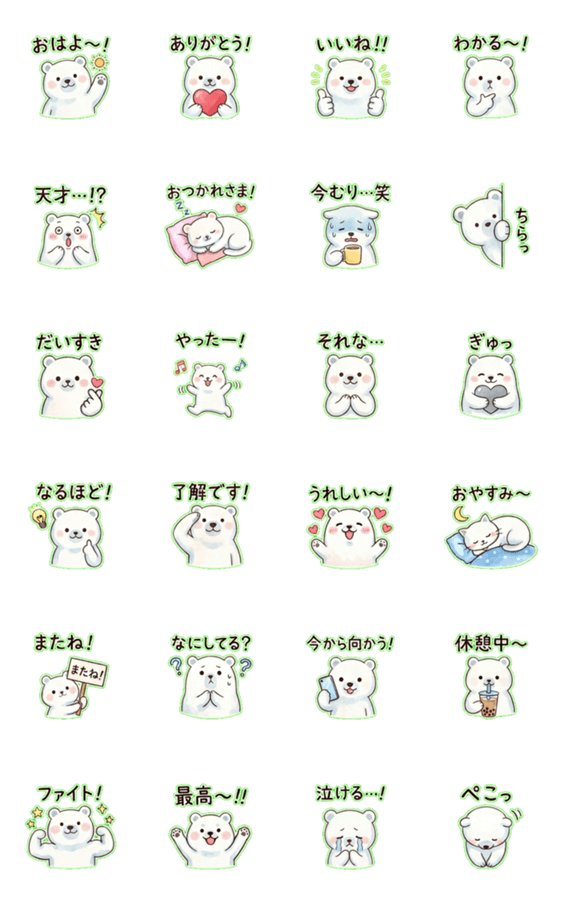 | スタンプ説明 | ほっこりシロクマキャラ「シロクン」の日常スタンプ24枚。挨拶・感謝・共感など毎日のトークで使えるひとことを厳選。家族・友人・職場でほっこり気持ちが伝わります。 |
