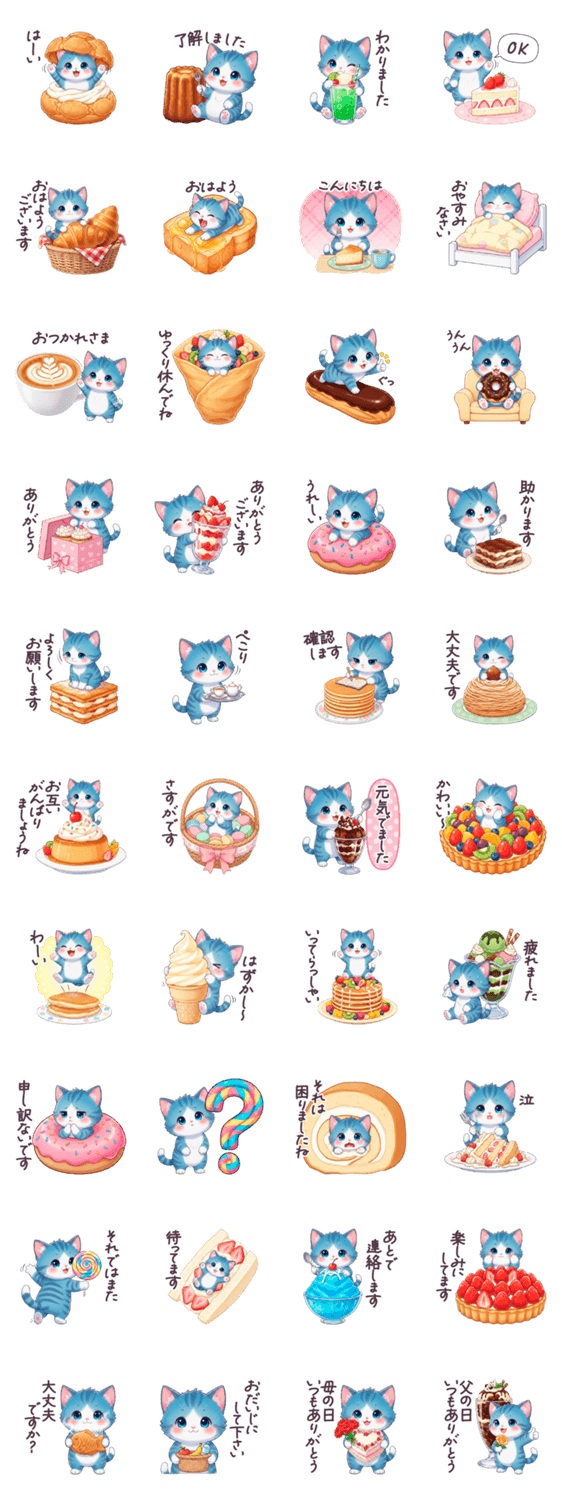 毎日使える あおねこ スイーツ カフェ 日常 -LINEスタンプマニア