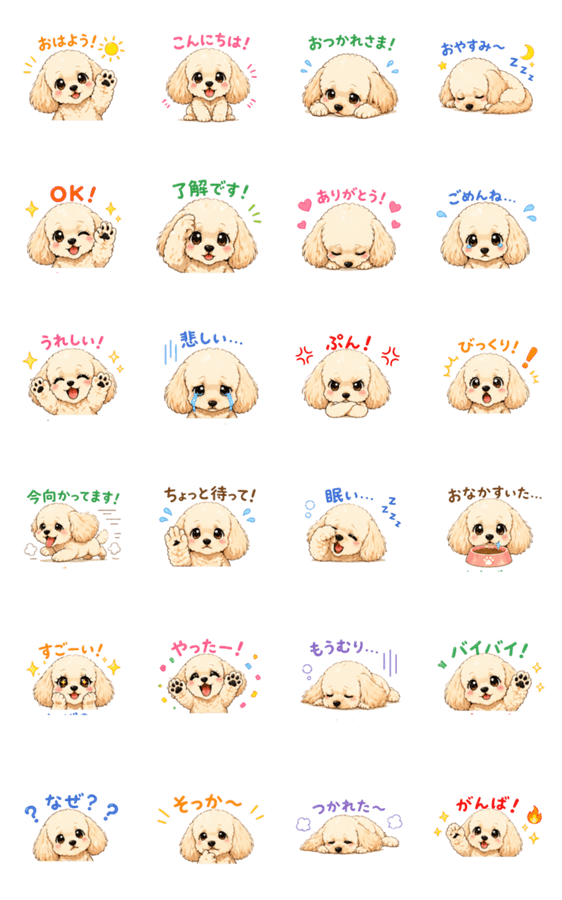 スタンプ説明 愛犬のトイプードルココアのスタンプです。