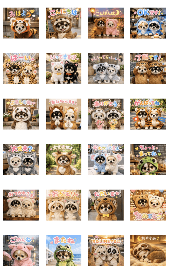 可愛いチワワがいろんな動物に変身♪画面いっぱいに飛び出すポップアップスタンプです♡犬