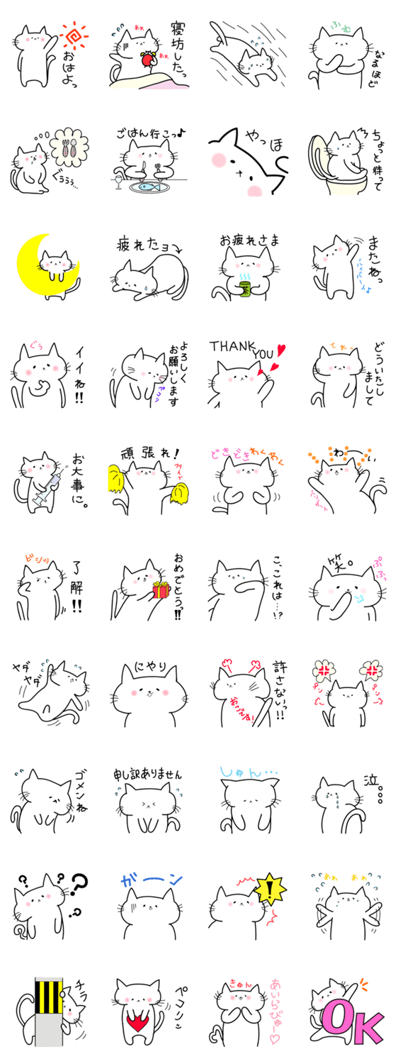 白ネコのあいうえお・・・ってるスタンプ