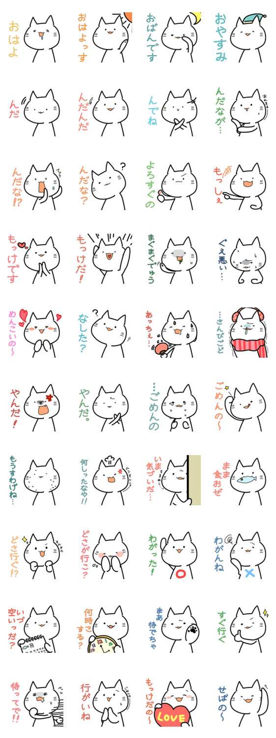 庄内弁を話す猫です。遊びの約束から何気ない会話まで幅広く使えそうな庄内弁を集めました!これであなたも庄内人…?!シンプルな白猫と一緒にLet's 庄内弁!