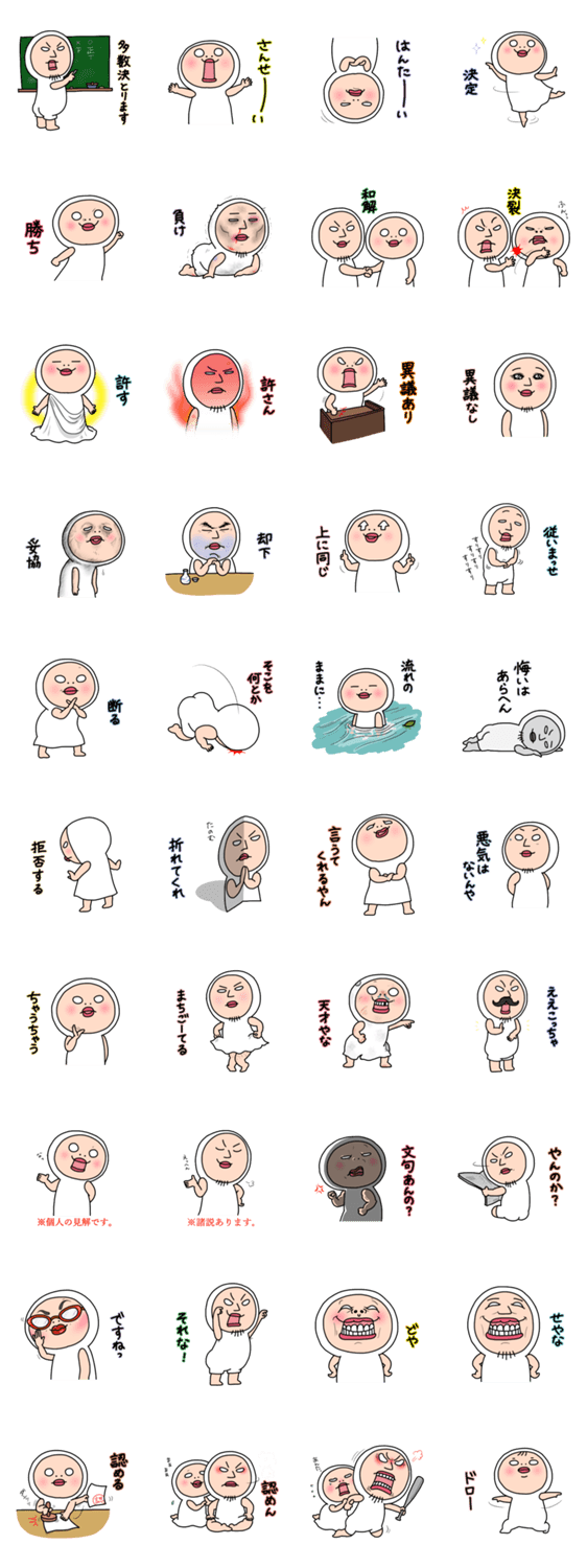 | スタンプ説明 | 第18弾『意見のぶつかり合い編』登場!さまざまな議論のやり取りに。 |