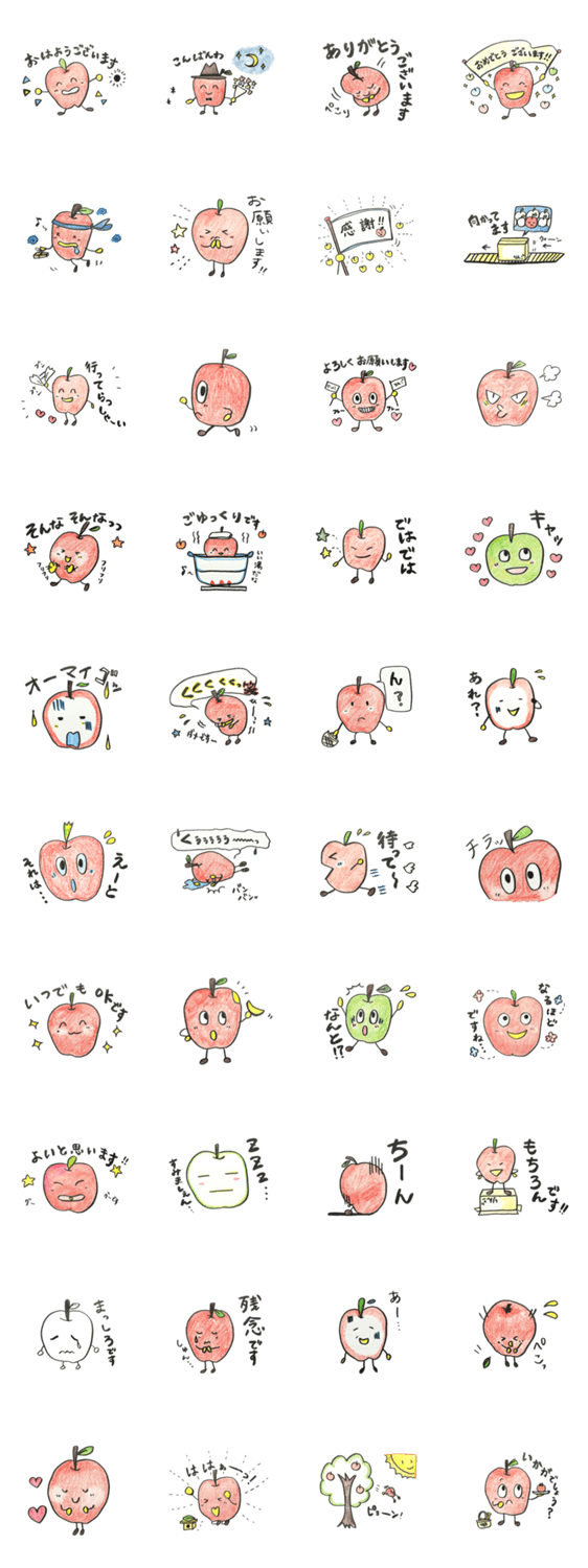 りんごのトムのかわいい敬語スタンプです。先輩や上司、家族とのコミュニケーションでどうぞ!