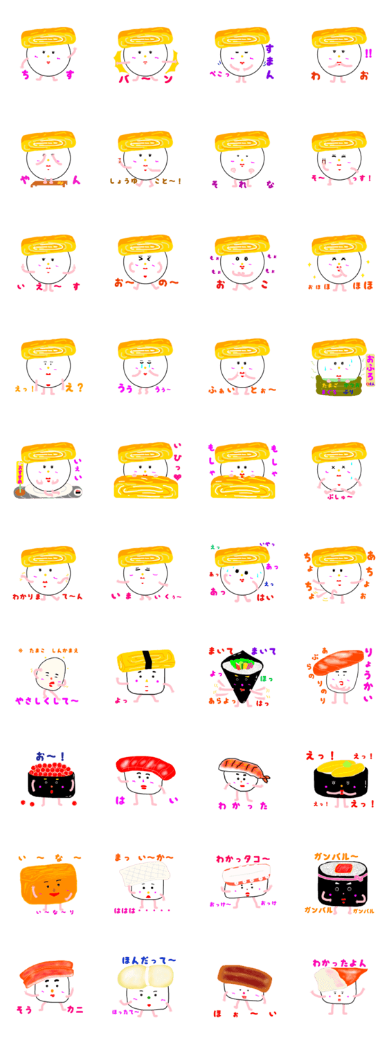 | スタンプ説明 | 寿司ネタでつくって見ました。良かったら使って見て下さい。 |