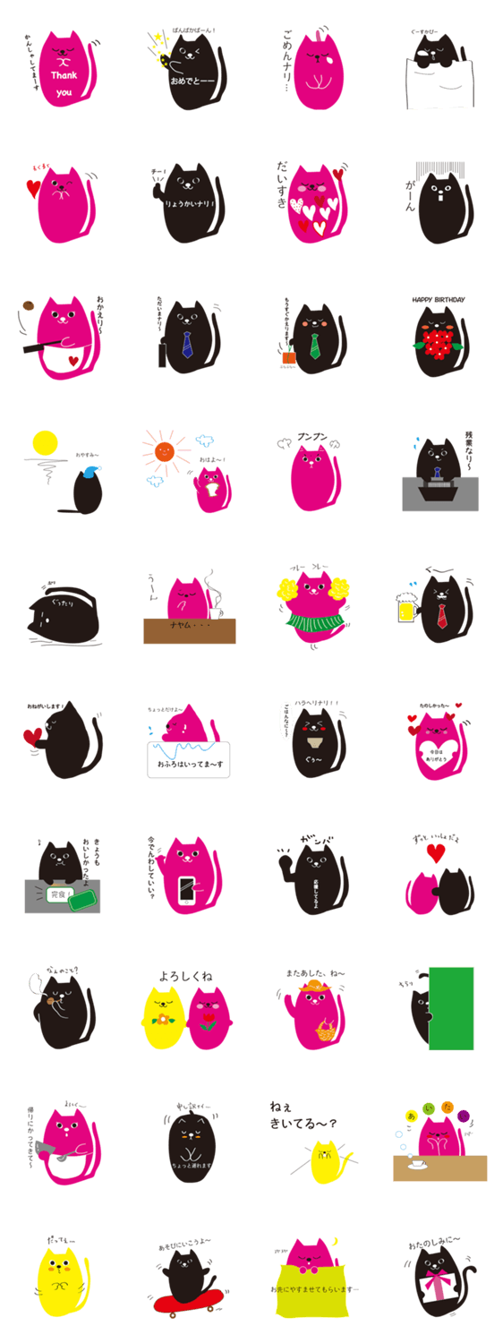 ちょっぴりシュールでアートなクロネコと連れ合いのモモネコちゃんの愛情たっぷりの365日。カップル、夫婦、家族、ママ友にも使いやすい。