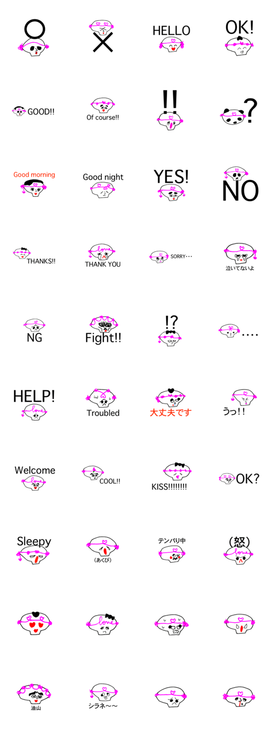 糸シリーズの第三弾ピンク(桃色)です。英語中心ですが(日本語も少し)男の子も女の子も手軽に使える基本的な日常会話スタンプです。