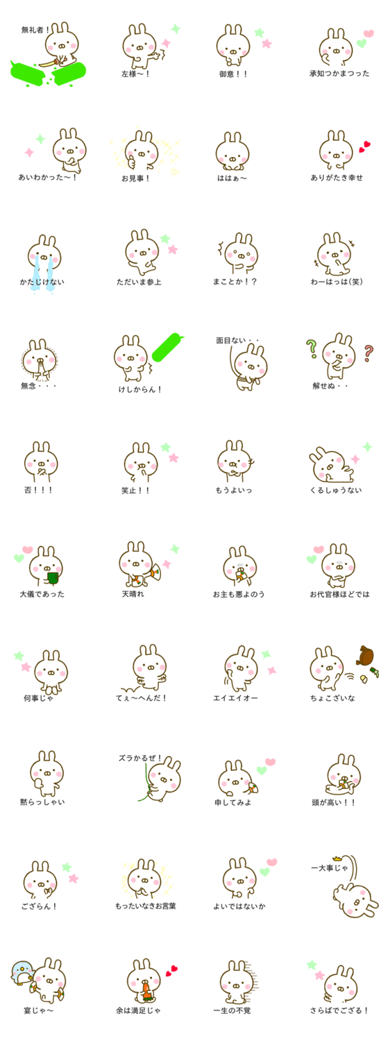 武士語を話すうさぎと吹き出しが一緒になったスタンプです!Naoyのスタンプ♪