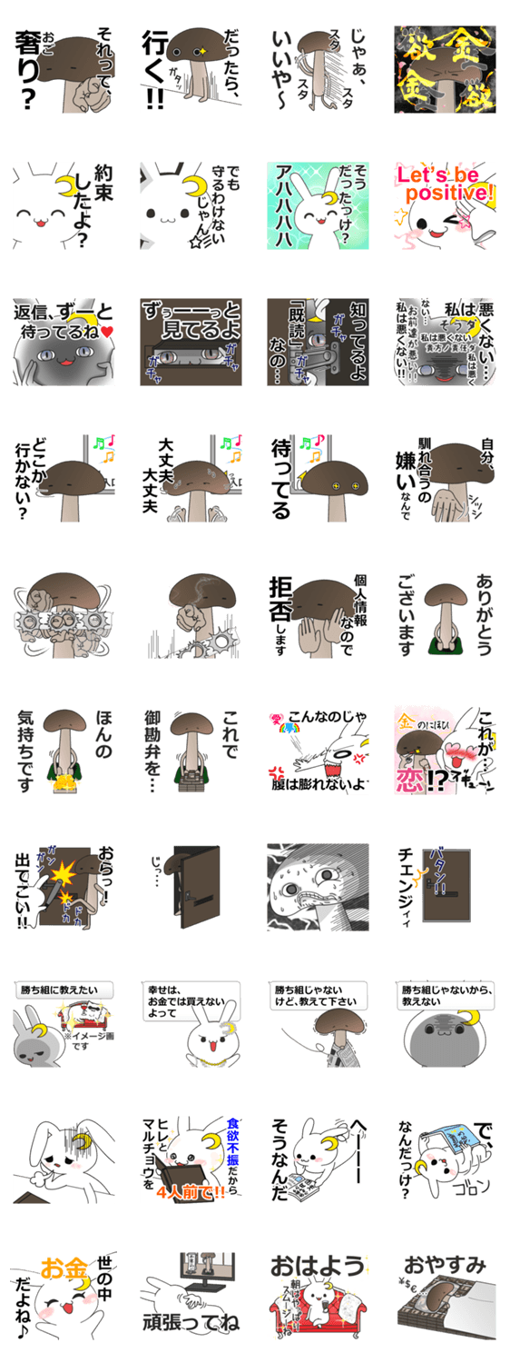 ゲスなウサギとキノコのスタンプです。送る相手には注意を!