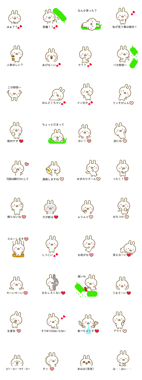 かわいく毒づくうさぎと吹き出しが一緒になったスタンプです♪Naoyのスタンプ♪