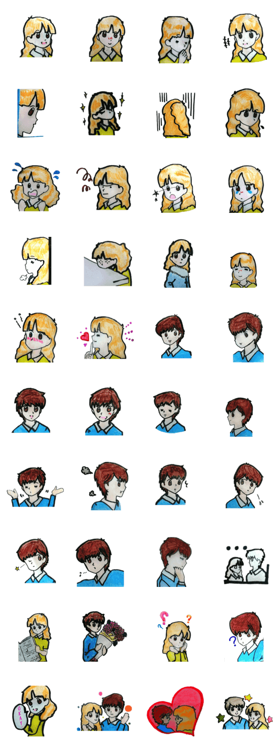 少し静かなケンと元気いっぱいなアンナ、そんな仲良し二人の”気持ち”スタンプです。